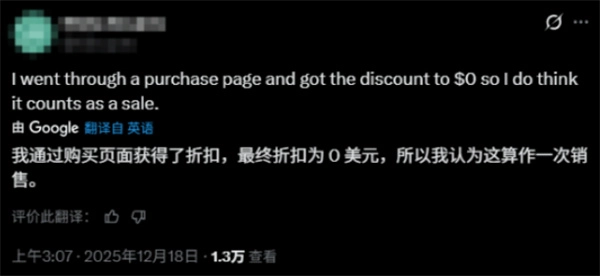 官方未明确说明销量里程碑是否与 Epic 平台“喜加一”活动直接相关,但玩家反馈表示,在 Epic 上免费领取游戏同样会计入总销量,因为系统将领取操作视作100%折扣购买。