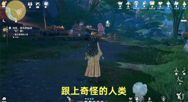 2、找到一群菇和奇怪的人类NPC,会被短暂硬控,几秒后恢复。点击加入对话,正式接取任务。跟随奇怪的人类NPC移动。