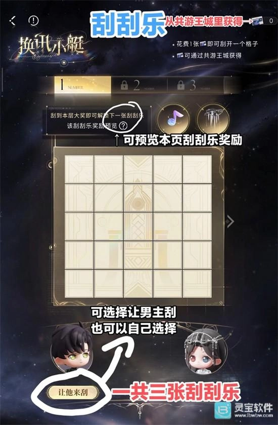 2.换讯小艇(刮刮乐)共三大张,可让男主刮,也可以自己刮