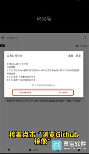 4、在设置订阅仓库窗口,选择【浏览GitHub镜像】,因为GitHub主站对网络环境要求比较严格,有时候会打不开