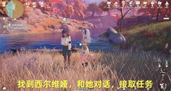 2、传送至母菇林地北侧山坡锚点,找到NPC西尔维娅并与其对话,正式接取任务