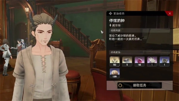 与威尔斯对话后,打开支线任务面板。点击接取任务,开启任务流程。