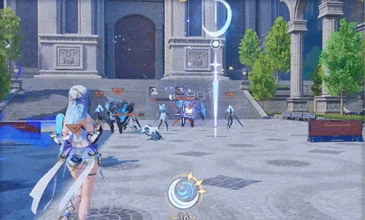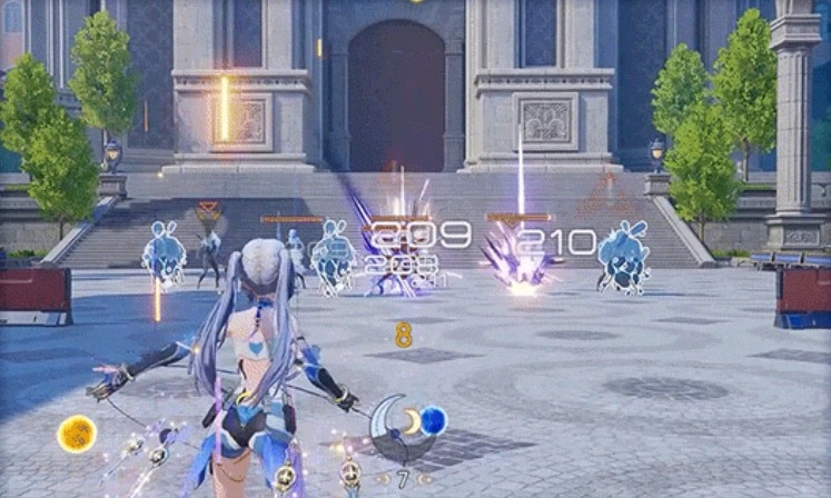 普攻名为“圆缺有律”,常规形态默认配备扩散型武器「灵轨月轮」。射击命中目标时,会向周围投射多柄飞剑,产生范围动能伤害,同时积攒“月刻值”。长按普攻可切换至集束形态,此时射击将触发“衔刃”机制——发射一枚自动追踪敌方的飞剑,命中后也会造成动能伤害并获取月刻值。