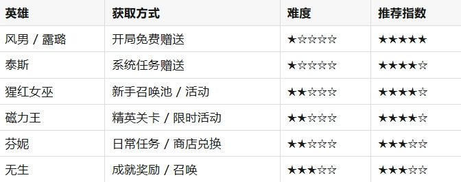 六、开局英雄获取渠道(快速收集指南)