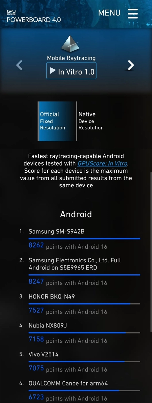 基于强悍性能和优秀的散热设计,三星Exynos 2600芯片现已登上Basemark光线追踪性能排行榜第一名,轻松超越了高通骁龙8 Elite Gen5 芯片,这在很大程度上归功于其搭载的Xclipse 960 GPU,它是首款采用定制版AMD RDNA 4架构的处理器。