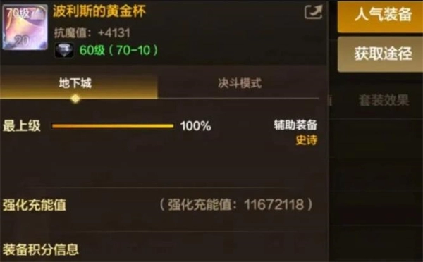 3、如果防具/首饰还差一两件,赶紧去刷困难团本或参与成长活动。目前游戏内魔界人小游戏等活动,能直接拿到自选史诗罐子,加速毕业。特殊装备是最容易卡住的一环。建议优先刷鱼雕套或黄金杯套,这两套在70版本强度最高,且80版本初期也能作为过渡使用。如果实在刷不出来,可以考虑用跨界石转移小号的装备。