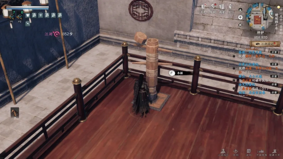 4.四个木桩的方向都调整好之后,再按F与四个木桩分别交互一下