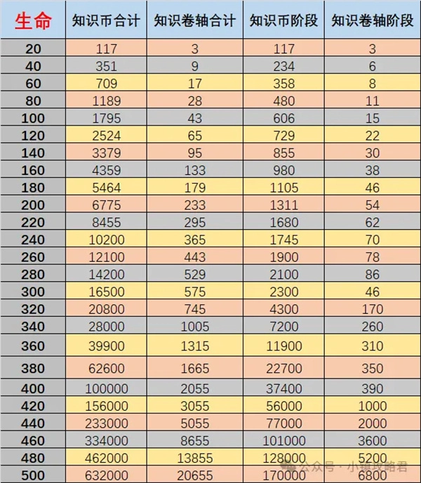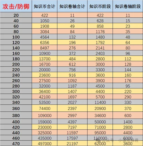 二、知识神殿资源表攻击/防御/生命(资源大户,按需升级)