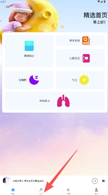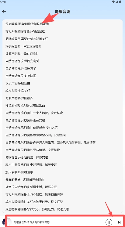 3、在打开的舒缓音调曲库列表中,选择任意一首曲目即可开始播放。