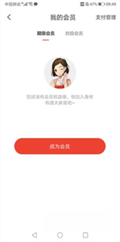 4、在弹出的界面中点击【成为会员】,注意可以选择期限会员或时段会员。