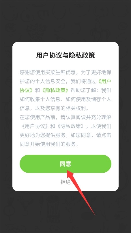 1首次使用时,需仔细阅读平台的服务条款以及隐私政策,确认无误后,点击“同意”按钮方可进入应用。