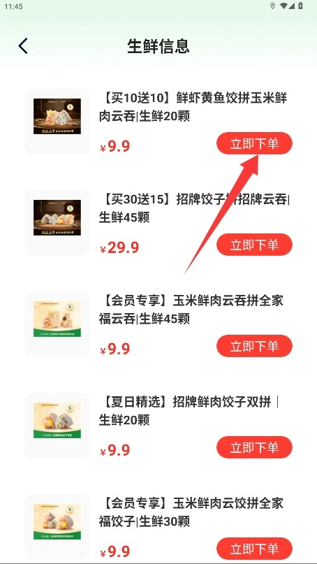 4、选择需要购买的具体商品后,点击立即下单按钮进入结算支付操作页面。