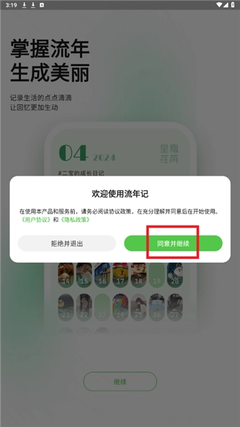 打开流年记,点击同意相关协议