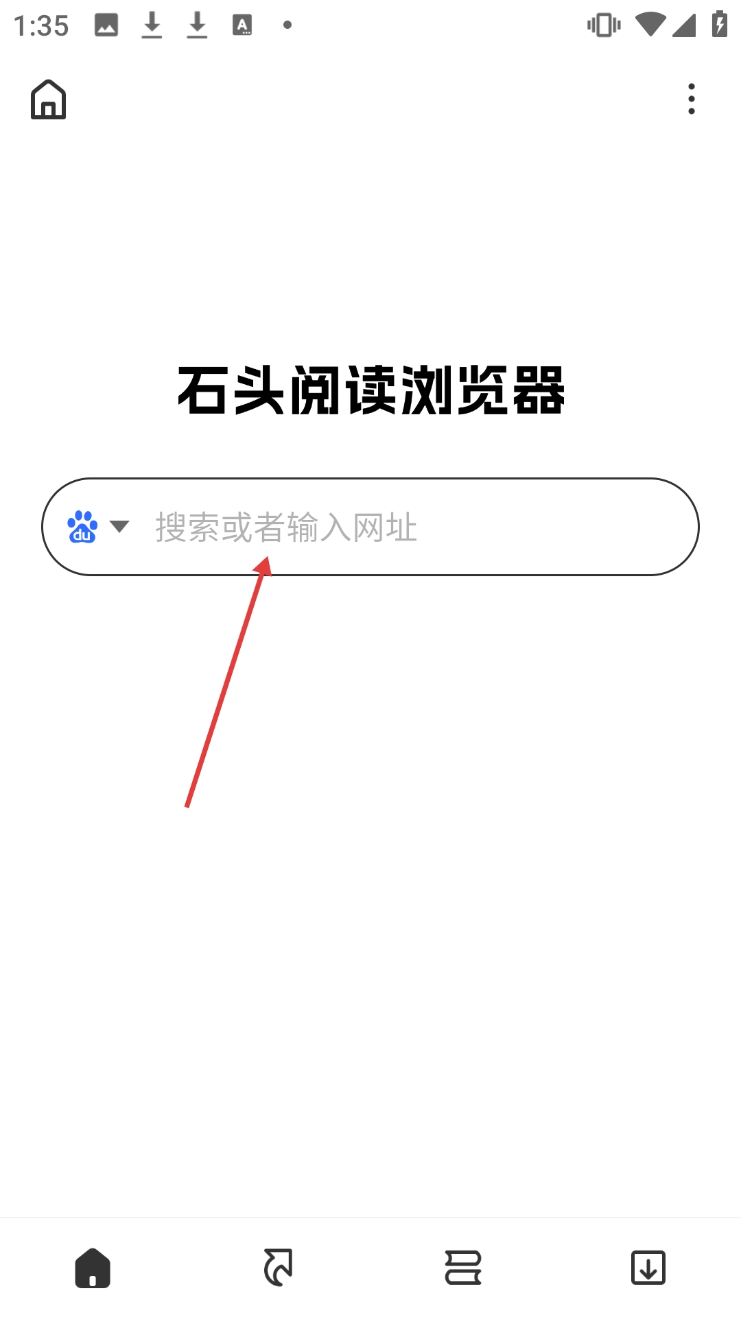 1. 于石头阅读浏览器的界面上,轻点搜索栏,接着输入相关内容展开搜索。