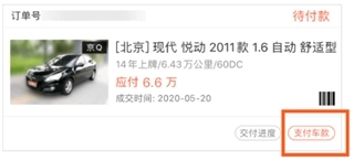 8、付款后,用户可在内查看车辆交易进度,完成过户后,交付经理会联系用户到场提车,如果本人无法到场的话,可以设置选择授权提车人,提车人携带证件到场提车即可