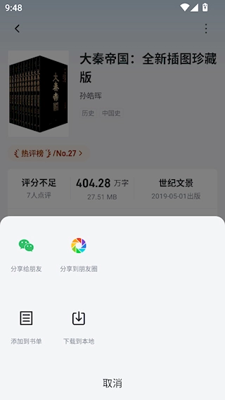 4、用户可以将自己喜欢的书籍到本地,随时随地进行阅读。