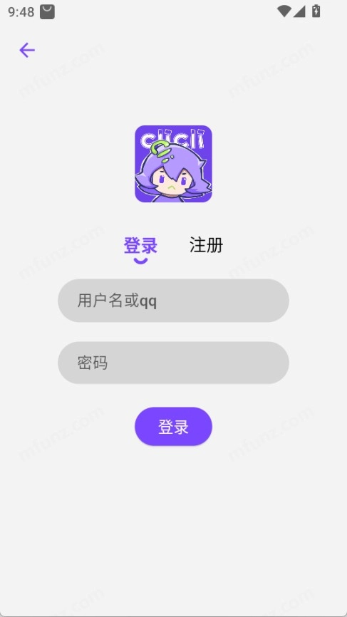 1. 开启cilicili紫色版本,轻点“登录”按键,填入用户名或者QQ号以及密码来完成登录。