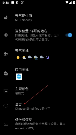 3、于设置界面,点击【语言】选项,从而进入语言选择界面。