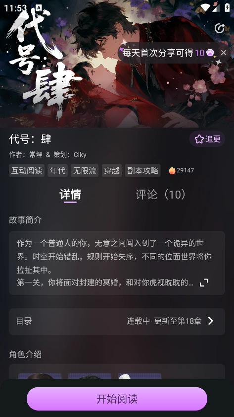 4、选择故事后即可进入阅读界面,剧情分支由选择决定走向。