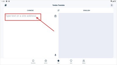 1. 开启雅虎翻译,点击底部的text选项,进入到文本翻译界面。