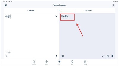 2. 在文本翻译页面的输入框内,输入“你好”。