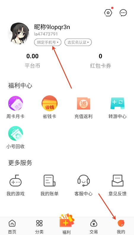 1、进入软件,软件自会派发一个账号。这时候你只需要在我的内绑定手机号