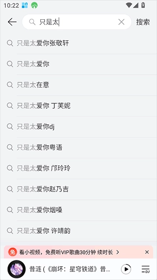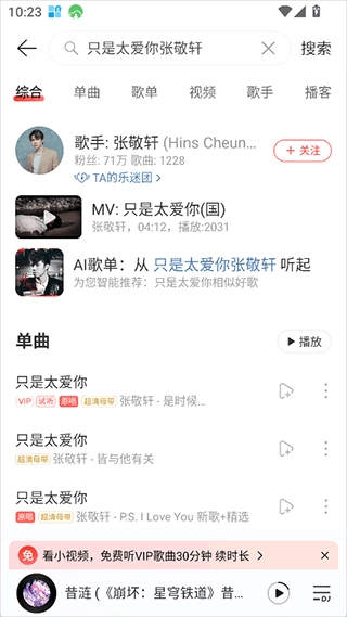 2、搜索结果展示后,点击对应歌曲就能直接启动播放,操作便捷。