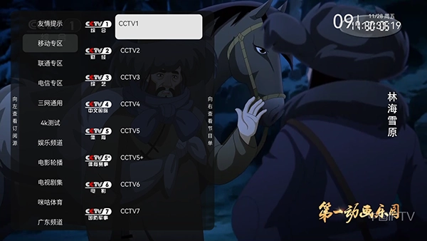 2、点击左侧屏幕可以唤起频道列表。