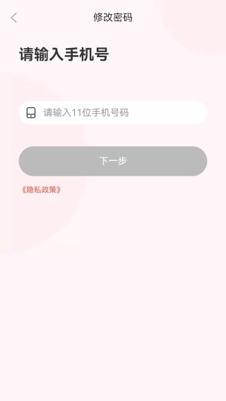 4、进入修改密码界面后,该界面可帮助忘记密码的用户重置密码,此时输入手机号码即可进入下一步操作。