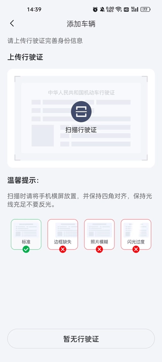 点击“添加车辆”按钮,接着上传行驶证并完善个人信息,就能完成车辆绑定操作。