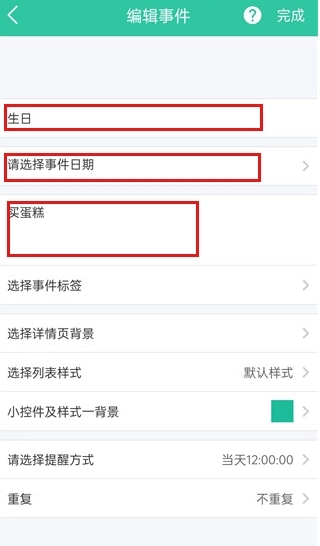 你可以输入事件的名称、备注信息以及对应的日期,之后点击“完成”按钮,如此一来,一个新的事件就创建完成了。