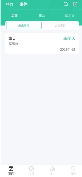 点击切换至事件栏,查看未来事件的列表、对应的内容以及倒计时信息