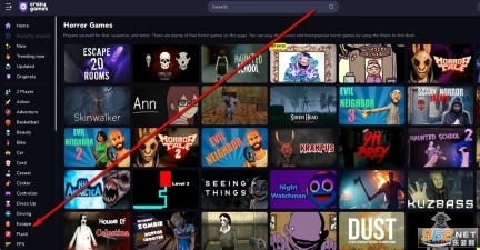 3、在网站左侧有一个菜单,打开后可以浏览游戏的各种分类,包括动作、冒险、装扮、射击、 逃脱 、 驾驶 、 塔防 、多人游戏、 我的世界 等等。