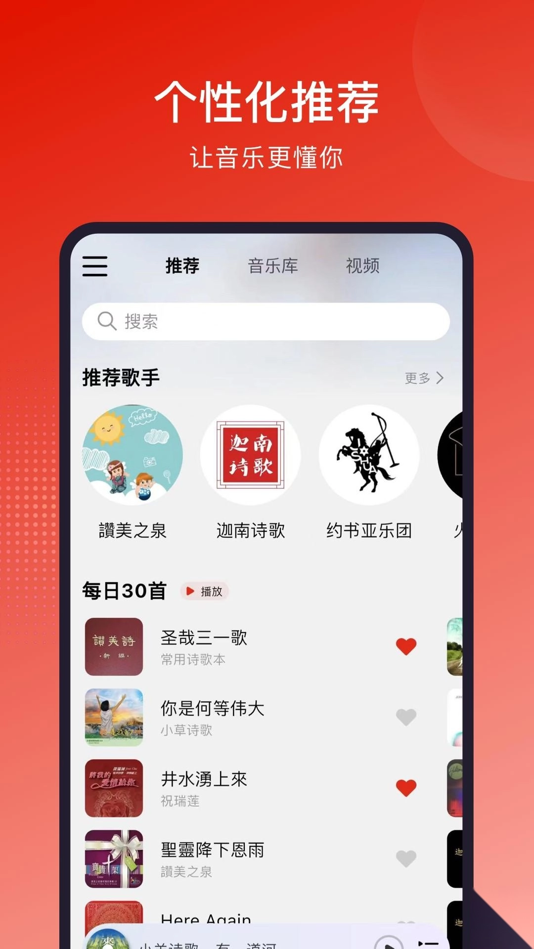 这里面收录了不少音乐可供收听,其中主打类型是一些赞美类的诗歌音乐。