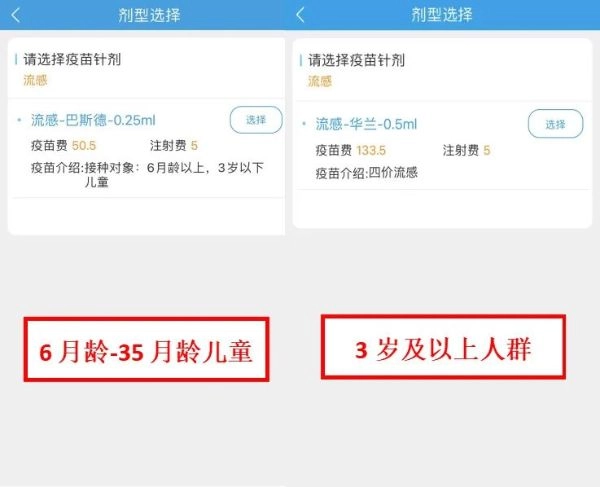 根据受种者的年龄自动分配适合预约的流感疫苗产品。
