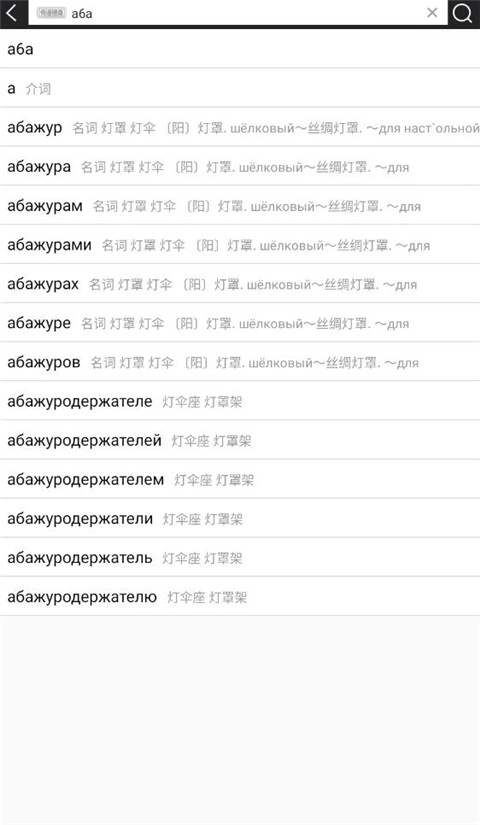 3、支援俄汉双向基本释义、行业释义、例句、重音、变形变格资料查询等功能。