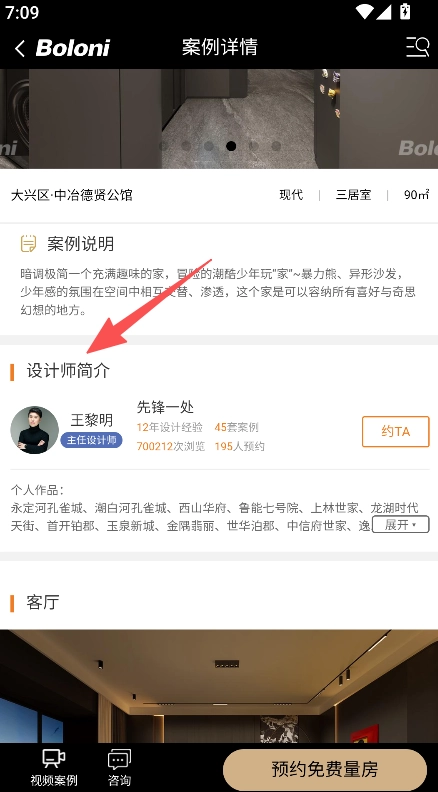 查看案例详情,浏览设计师简介,选择心仪设计师。