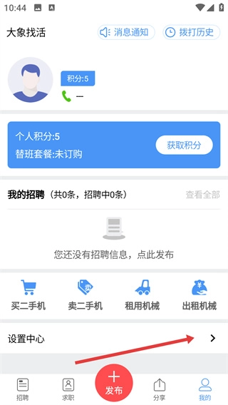 在“我的”页面,找到并点击【设置中心】选项,即可进入设置中心页面。