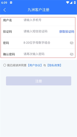 注册账号时,需要依次输入手机号码、获取并填写验证码、设置密码及确认密码,勾选同意相关协议后点击注册按钮,即可完成账号创建流程。