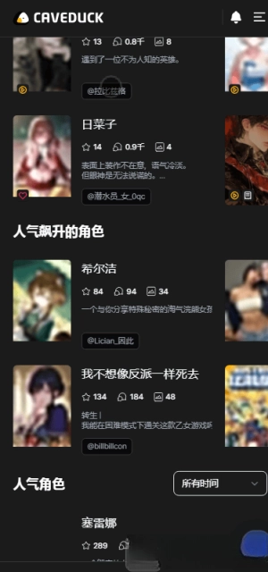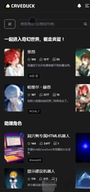 登录成功后进入角色专区,挑选一个喜欢的角色就能开启聊天。