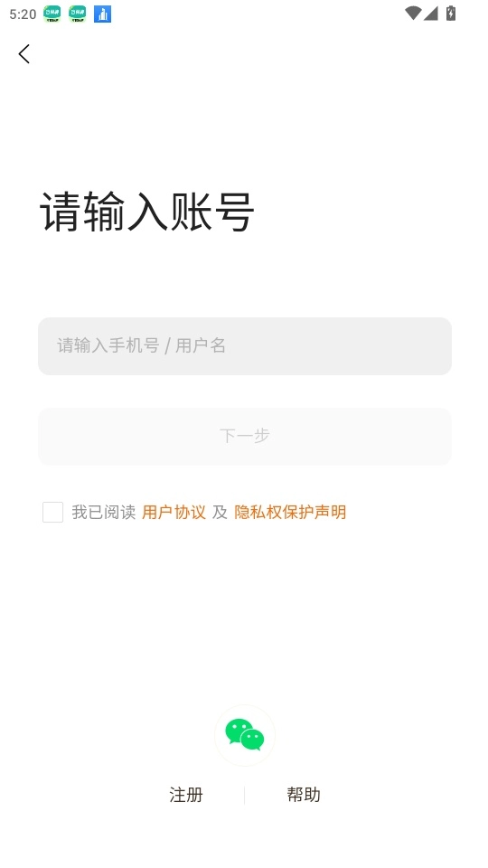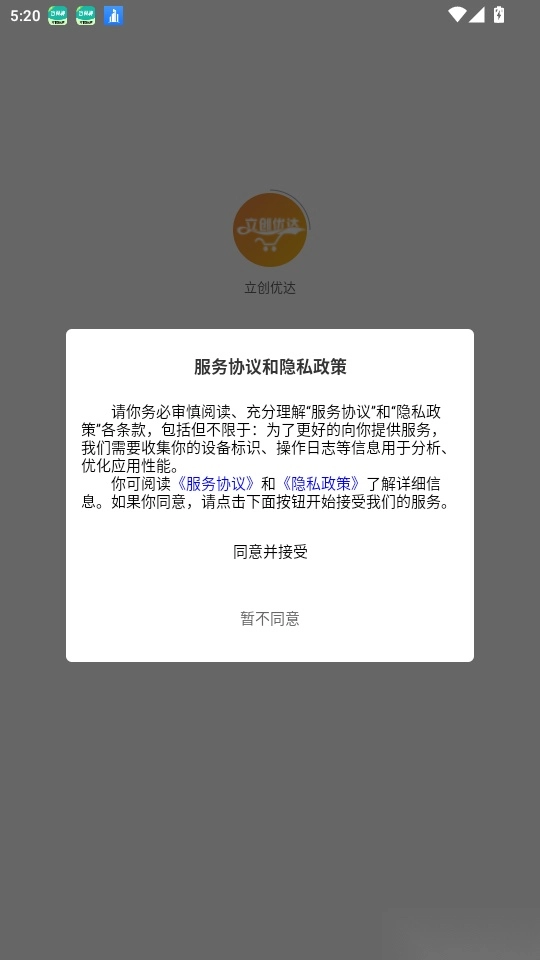 打开软件后,阅读“服务协议和隐私政策”,点击“同意并接受”按钮即可进入。