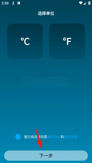 2,选择一个温度单位就可以点击下一步