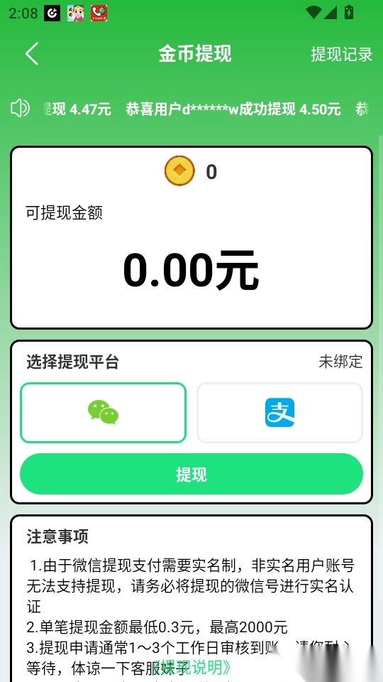 最后进入“提现记录”菜单界面,即可查看所有记录信息。