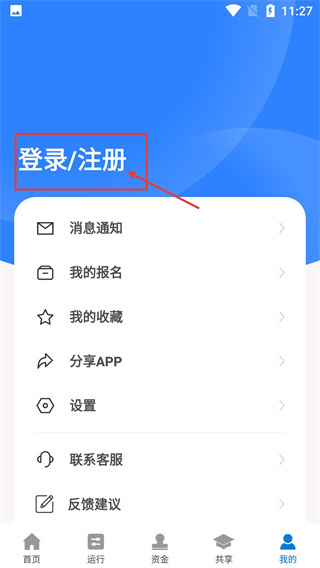 在个人中心页面,点击【登录/注册】板块,就能进入登录注册页面。