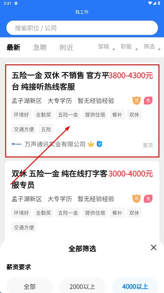 在筛选结果里挑选自己感兴趣的职位,比如“提供五险一金、双休,非销售性质,平台纯接听热线客服”这类岗位。
