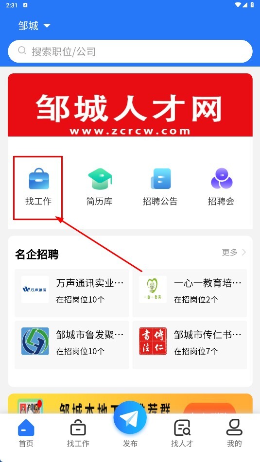 点击【找工作-功能按钮】,进入找工作页面。
