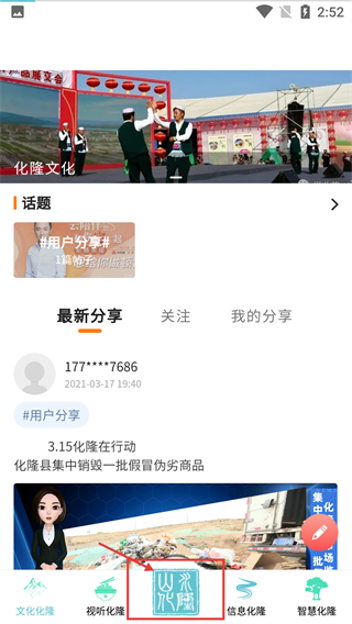 在软件首页,点击底部中间位置的【山水化隆】图标,就能进入对应的功能页面。