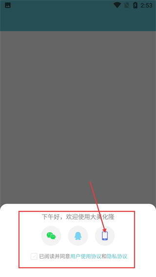 在登录选择界面,点击手机图标即可进入手机号登录流程。