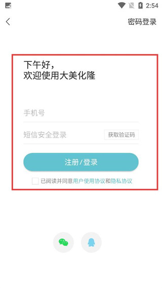 在密码登录界面,填写手机号与密码,点击【注册/登录】按钮,同时勾选同意相关协议,即可完成密码登录流程。