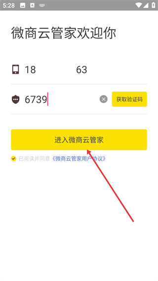 在输入验证码之后,点击【进入微商云管家】这个按钮,就可以完成登录的操作了。